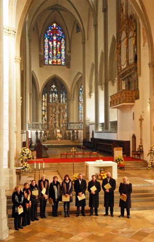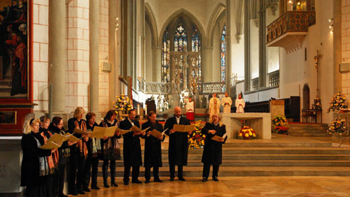 Am Sonntag, den 20.11.2011 gestalteten wir den Gottesdienst zum Christ-Königs-Fest um 11.30 Uhr im Hohen Dom unserer Heimatstadt, mit Werken von Heinrich Schütz und Melchior Franck. Zum Abschluss ließen wir das, den tiefen Glauben damaliger Zeit spürbar machende "In te, Domine, speravi" von Josquin Desprez erklingen. Der Zelebrant Domkapitular Prälat Dr. Bertram Meier lud uns anschließend ein, wieder einmal einen Gottesdienst an dieser Stelle mit unserem Gesang zu begleiten – dieser netten Einladung werden wir sehr gerne entsprechen!
